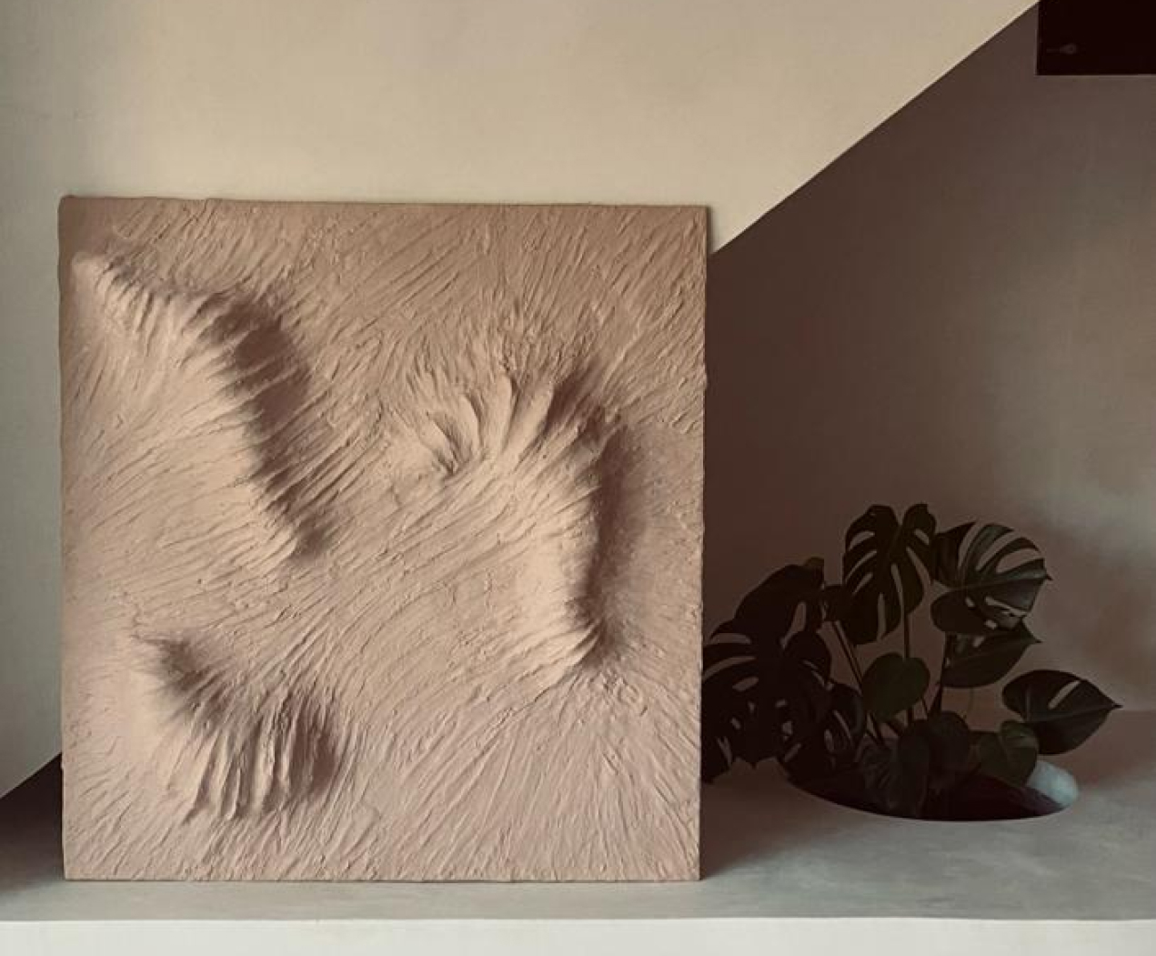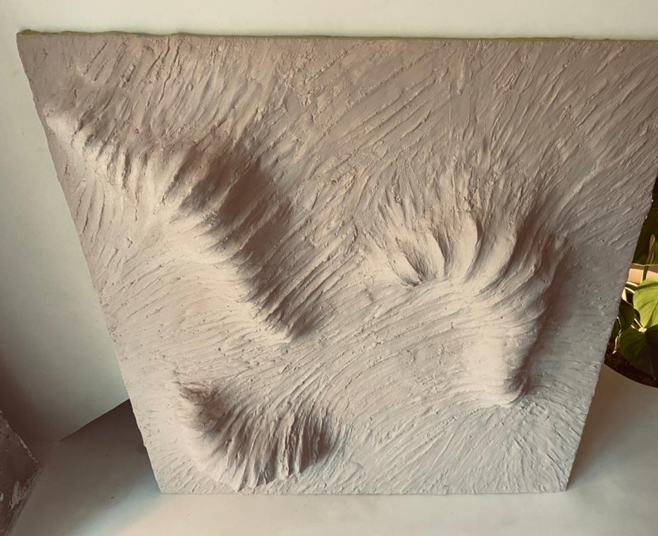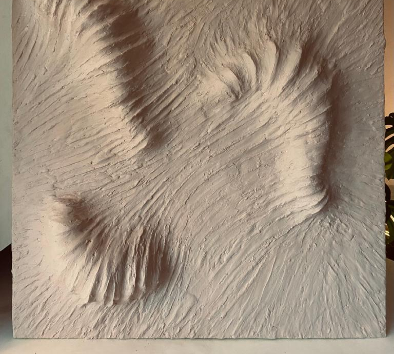 Materiales: Alambre y yeso sobre material sobre tablero de madera.